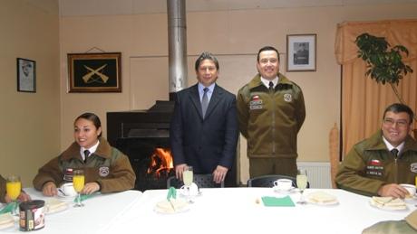 El Capitán de la Subcomisaria de Carabineros de Puerto Williams, Rodrigo Pizarro Ramírez, recibió el saludo del gobernador de la Provincia Antártica, Nelson Cárcamo, en conmemoración del 84º aniversario de la institución policial.